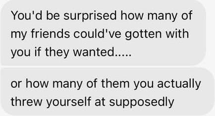 I would often hear stories about myself and be slut-shamed for them. (Slut-shaming is the practice of criticizing people, especially women and girls, who are perceived to violate expectations of behavior regarding their sexuality.) I heard stories about guys "getting me," how easily they could've gotten me, or even about relationships I didn’t know I had. I didn't think it was real-life that people could lie about such a situation or be that delusional!